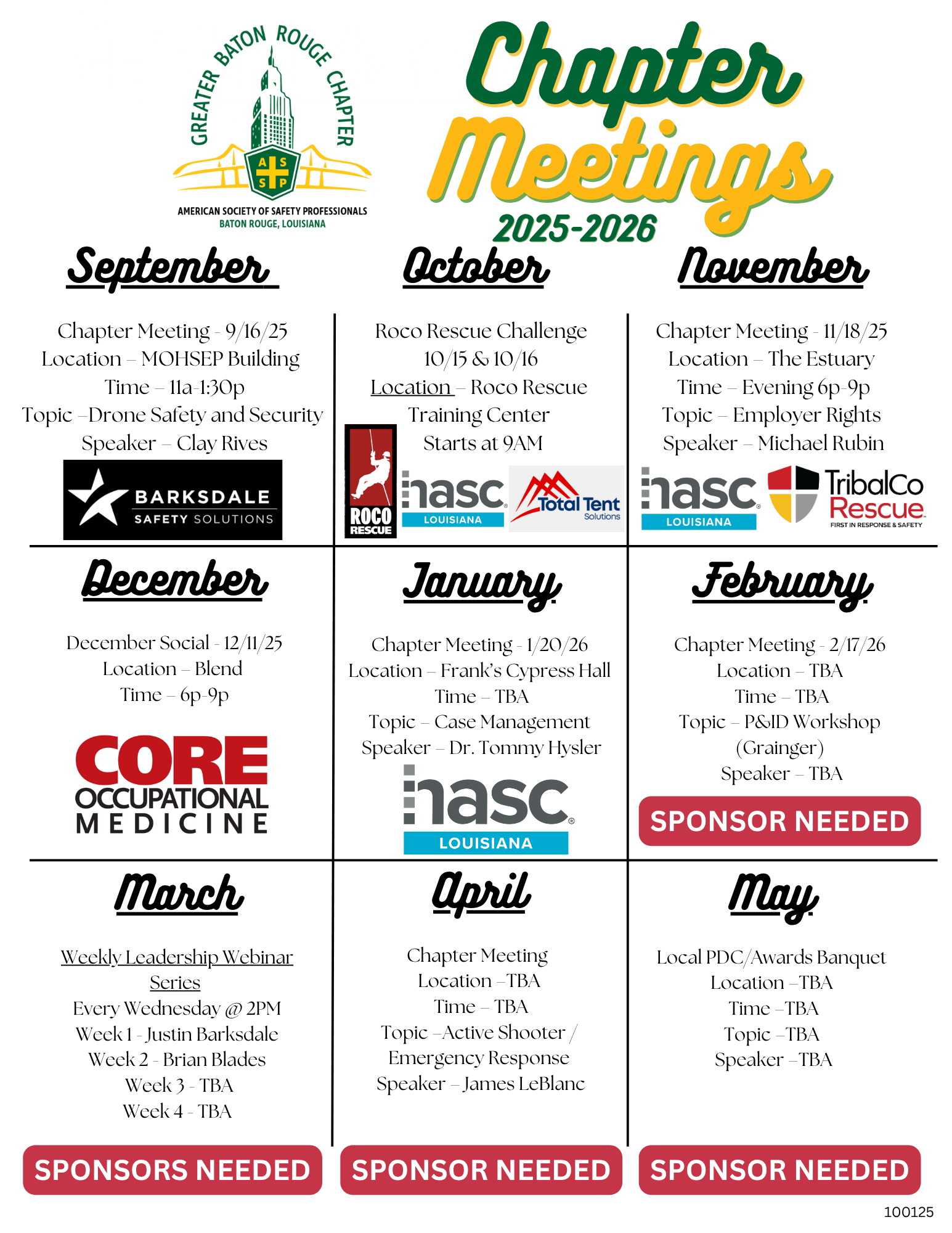 The Greater Baton Rouge Chapter of the American Society of Safety Professionals Announces the 2024/2025 Executive Board Nominees
